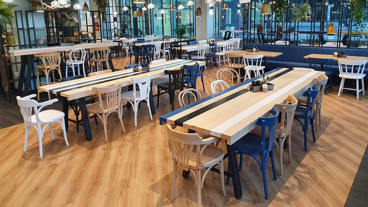 Unsere Produkte sind für intensive Nutzung in Restaurants, Hotels, Cafés konzipiert, können aber auch für den häuslichen Bereich angepasst werden, ohne Haltbarkeit und Komfort zu beeinträchtigen.